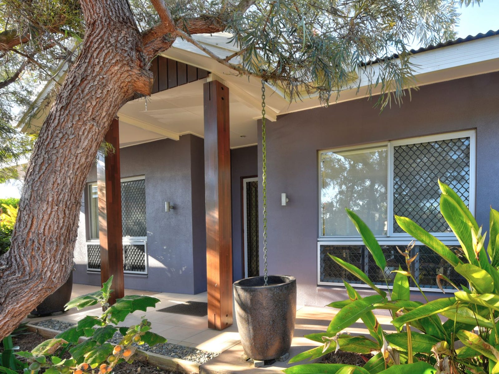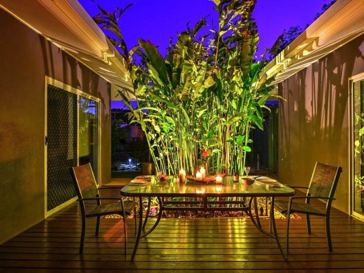 Designer built - this stunning residence has an open layout with the kitchen and living areas flowing out to a decked courtyard with tropical plants and landscape lighting.